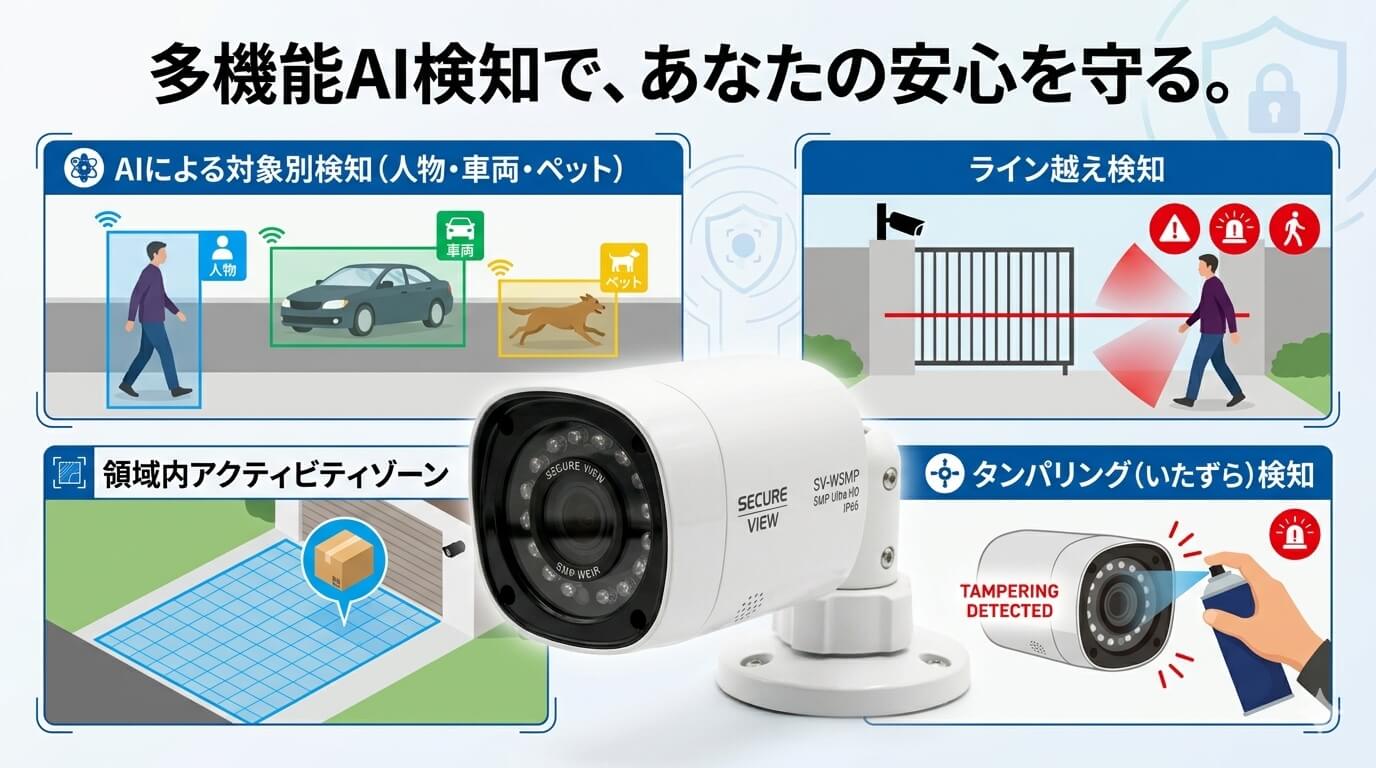 暗所では スターライト相当のカラー夜間撮影 と 赤外線モード を切り替えられ、イベント検知時にフルカラーへ自動切替するスマートナイトモードに対応。