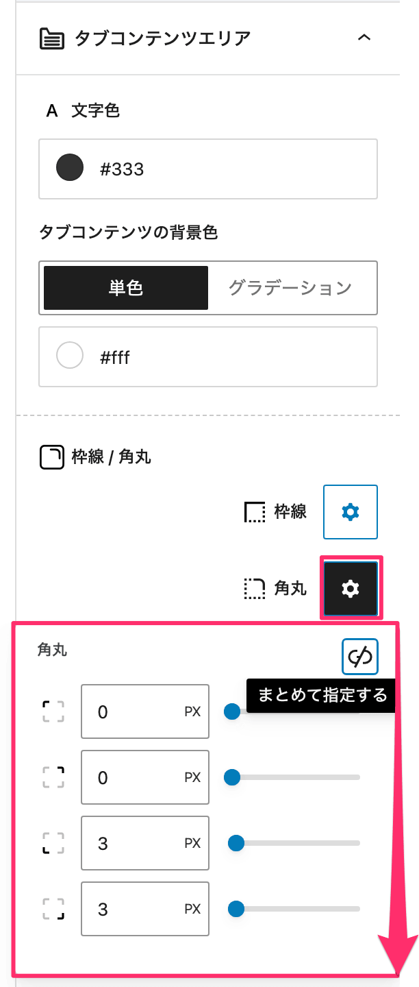 - タブコンテンツエリア(タブアイテムブロック)の角丸調整