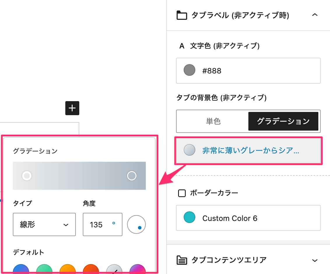 - タブコンテンツエリア(タブアイテムブロック)の背景カラー