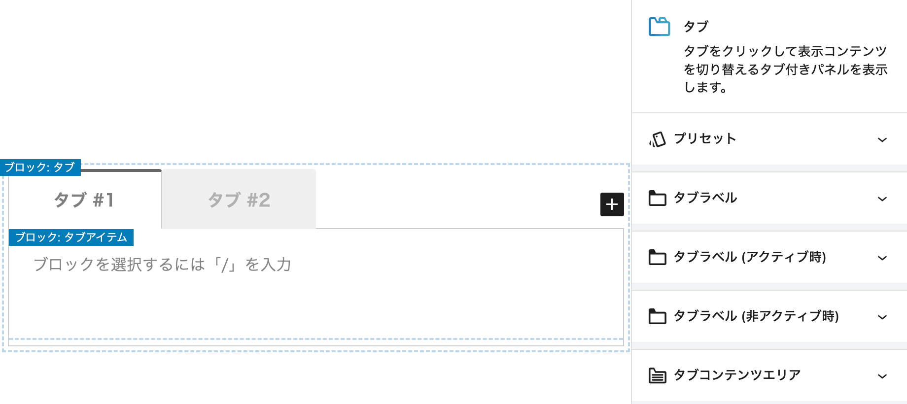 タブラベルは、ブロックエディタ上でテキストを直接入力・変更することも可能です。