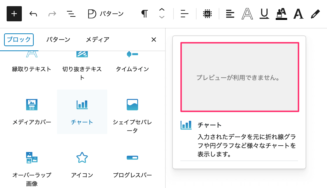 しかし、外部ライブラリを利用したりサーバーサイドレンダリングを要する動的な表示を伴うブロックの場合、プレビューでは「プレビューが利用できません。」と表示されてどのようなコンテンツが表示されるかわからないケースがあります。